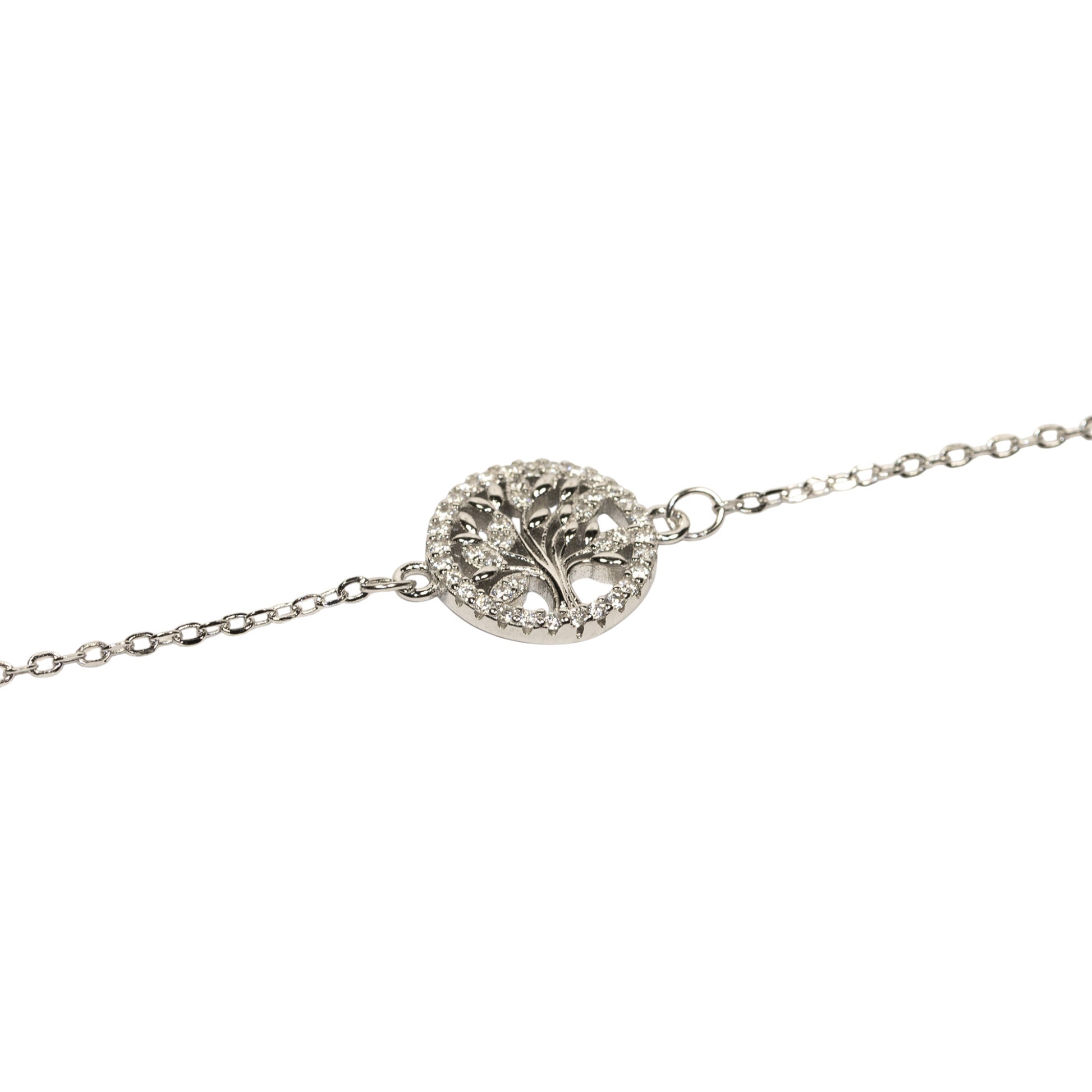 Bracciale in argento 925 con albero della vita, simpbolo di crescita e connessione. Il bracciale è impreziosito da zirconi cubici che donano luminosità al pezzo. Profilo sottile per un'eleganza discreta da indossare ogni giorno.